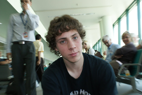 well many card games, a light lunch (light being the operative word) and some funky tasteing pineapple juice later we still didn't have an answer. Rumour has it that the guy had been drinking spirits on the plane, which is when we stop call him "him" and started calling him a pr#*k! True or not we were fed up, it had been a good 4 hours in there now and we wanted out! Jak hit the floor and dosed off, apparantly floors are much more comfortable than seats (you decided, but after that amount of time on a plane I could see what he meant). 45 minutes later and the one of the masked took their mask down and people started getting up...YES! Time to go! I woke Jak up we got up and came to this little internet cafe. What a nightmare....well what an experience anyway!
